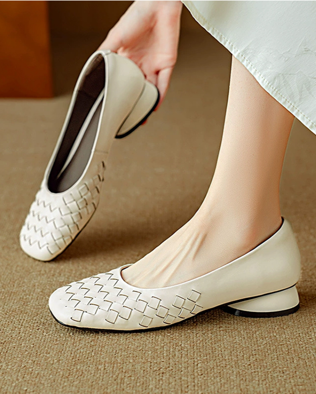 編織淺口休閒皮鞋