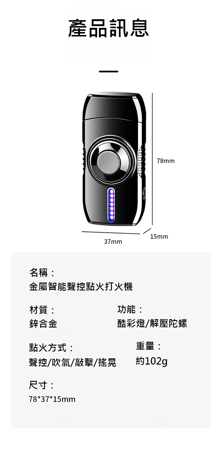 【多重酷炫燈光】金屬智能聲控點火打火機
