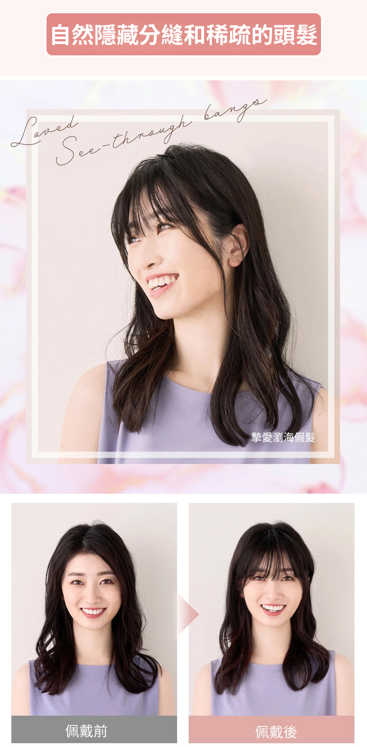 【無需發卡】自然魔鬼氈假髮片女💖100%真髪,可染可燙,外觀自然,觸感柔軟,超顯臉小還減齡